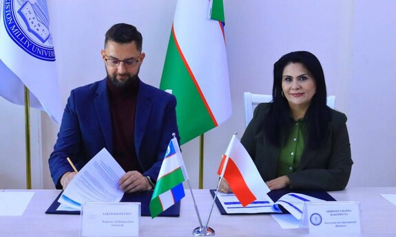 During the study visit to Uzbekistan, which took place from 5 to 13 November 2025, Dr. Eng. Jakub Kostecki delivered lectures on soil degradation for students of the Mirzo Ulugbek National University of Uzbekistan. During his stay, he also visited a field experiment established under the supervision of Prof. Zafarjon Jabbarov located on the dry bed of the Aral Sea. The visit aimed to explore opportunities for future international research projects focused on environmental protection, particularly in degraded areas affected by anthropogenic activity. As part of the programme, a meeting was also held with university authorities, represented by the Vice-Rector for International Relations, Prof. Raima Shirinova. During the meeting, opportunities for academic staff and student mobility were discussed, as well as the possibility of research internships and joint innovative research projects within the Erasmus+ framework. The discussions emphasised the strengthening of long-term cooperation and the expansion of academic exchange between the institutions. At the end of the meeting, the Erasmus+ inter-institutional agreement was signed, confirming their readiness for continued collaboration.